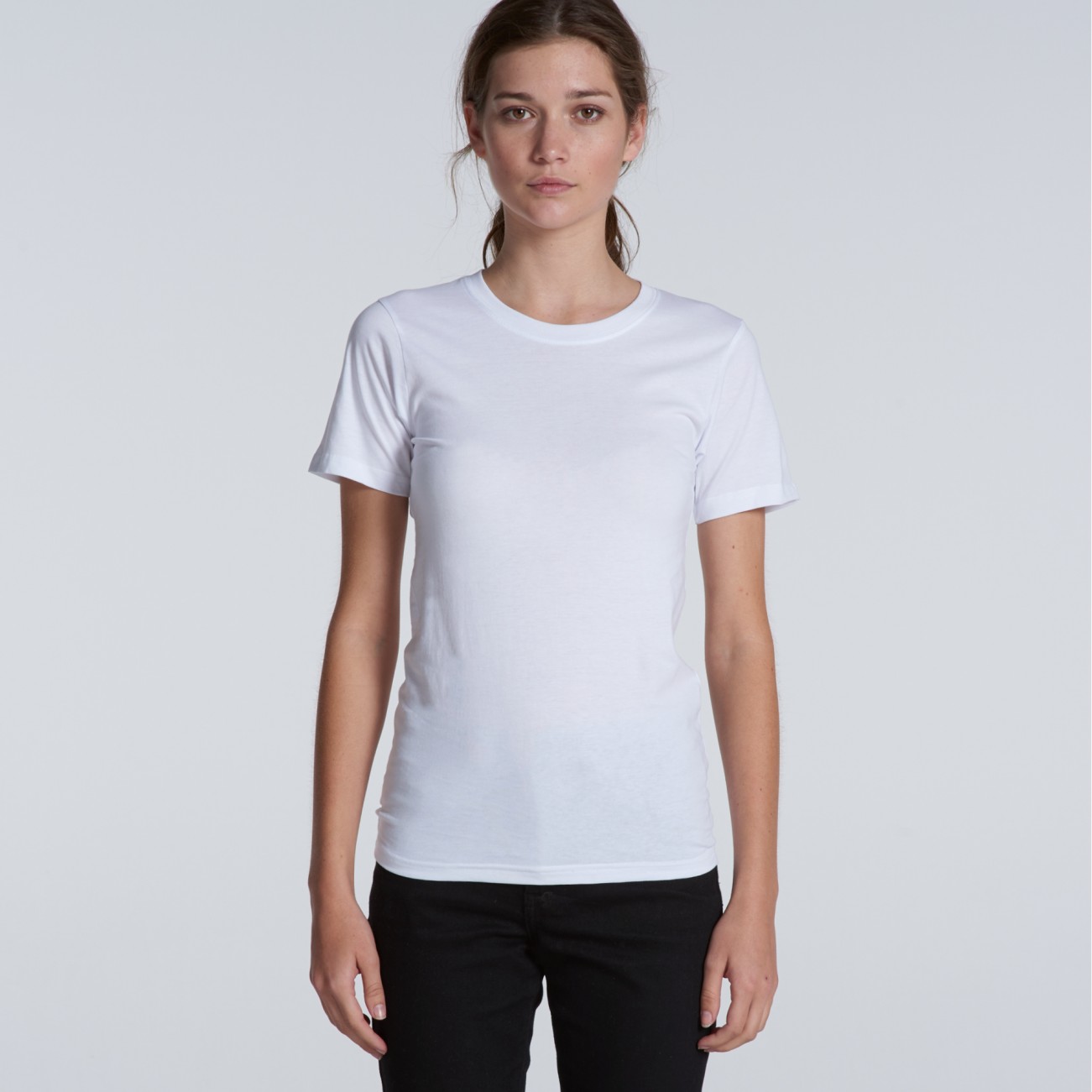 The female version of the AS Colour Staple Tee is the AS Colour Women's Maple Tee, which is also available in the Organic Maple Tee version.